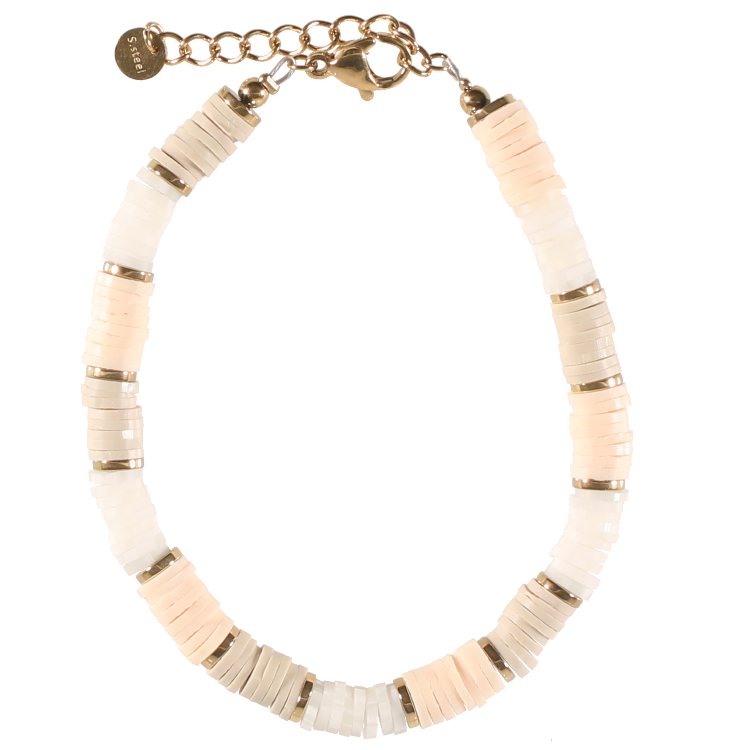 Description Bracelet composé de perles cylindriques heishi en résine synthétique et caoutchouc de couleur. Fermoir mousqueton en acier doré avec une rallonge de 3 cm. Cliquez sur une matière, un thème, une couleur ou une collection pour voir tous les articles associés.