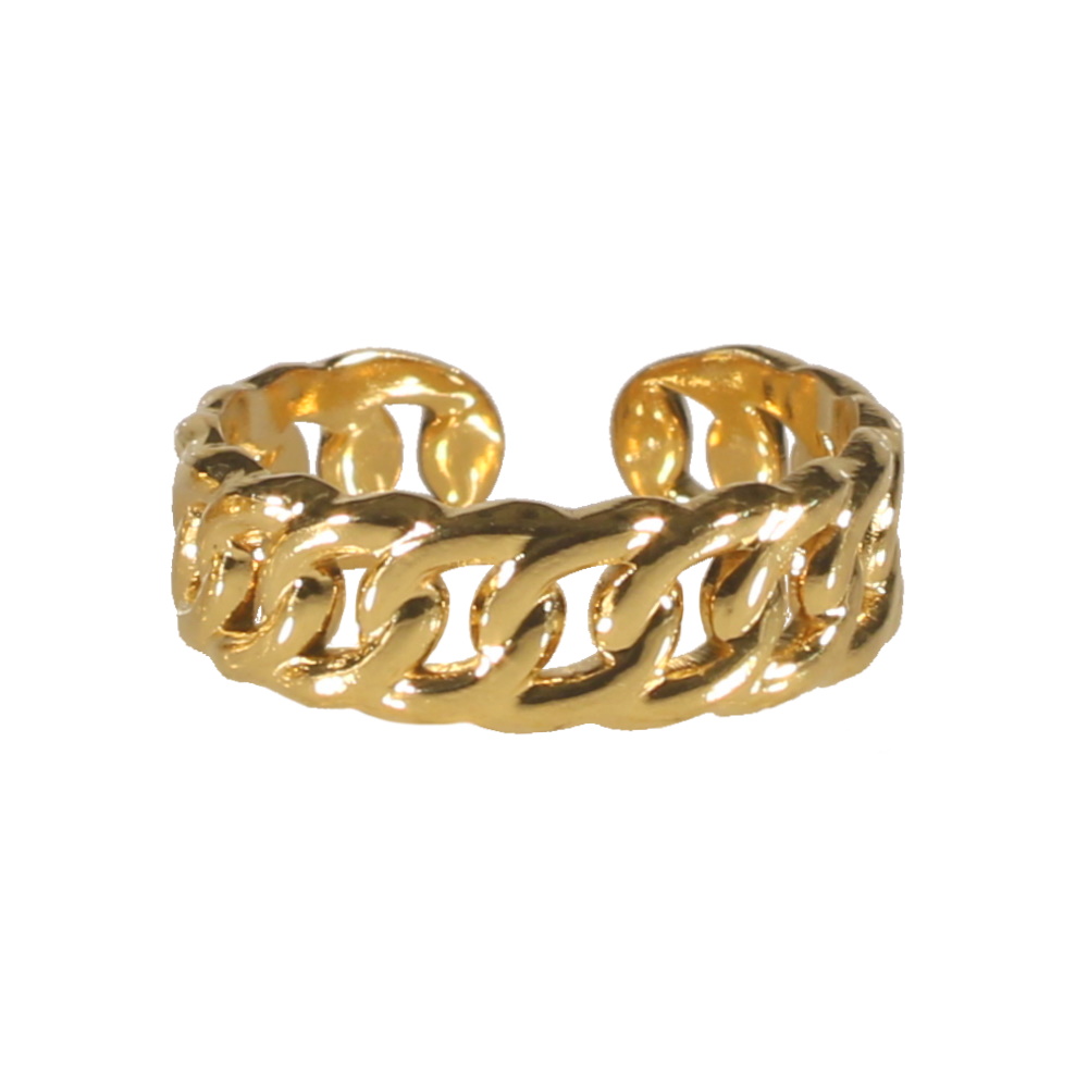 Description Bague en forme de chaîne en métal doré. Taille ajustable. Cliquez sur une matière, un thème, une couleur ou une collection pour voir tous les articles associés.
