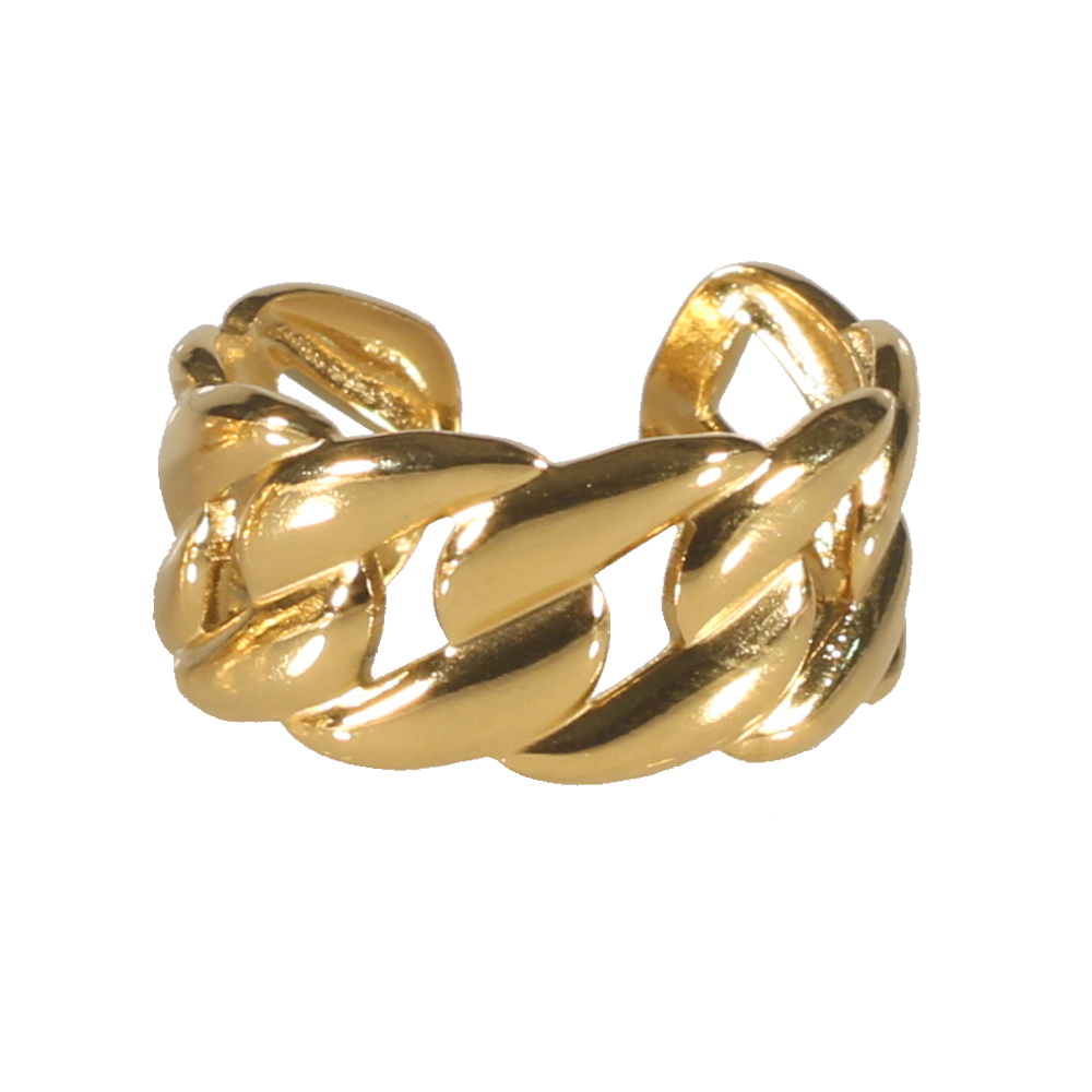 Description Bague en forme de chaîne en métal doré. Taille ajustable. Cliquez sur une matière, un thème, une couleur ou une collection pour voir tous les articles associés.