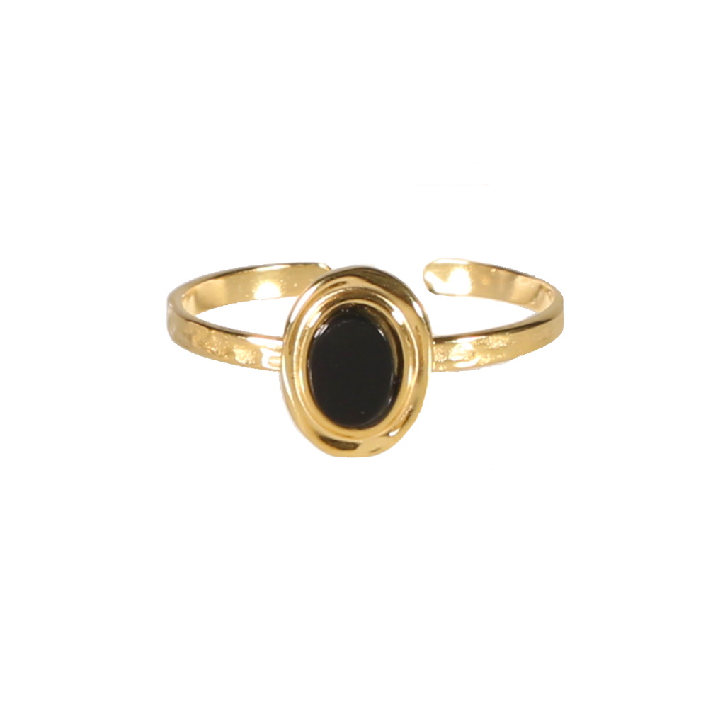 Bague en acier doré surmontée d'une véritable pierre d'Agate noire de forme ovale.