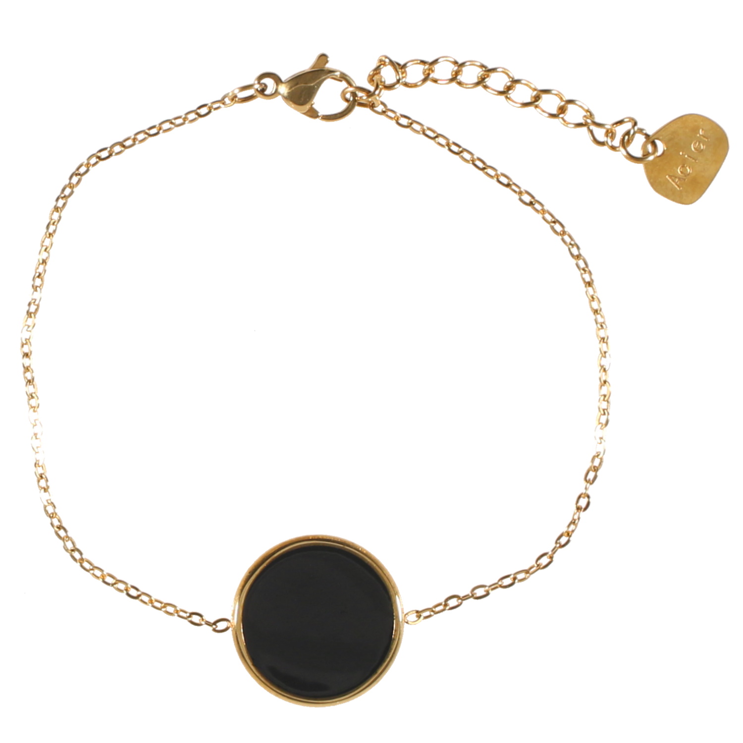 Description Bracelet composé d'une chaîne en acier doré et d'une pastille ronde pavée d'émail de couleur noire. Fermoir mousqueton avec 3 cm de rallonge. Longueur 16+3 cm [Guide des tailles] Largeur 15 mm Matière(s) Acier , Email . L'acier utilisé dans la bijouterie existe sous plusieurs qualités. Nous utilisons principalement la qualité 316L, qualité qui est utilisée en chirurgie. Cet acier est donc inoxydable et reste très résistant. Fermoir Mousqueton Couleur(s) dominante(s) Doré , Noir Public Adolescent , Adulte . Genre Femme , Fille . Saison Indémodable . Cliquez sur une matière, un thème, une couleur ou une collection pour voir tous les articles associés.