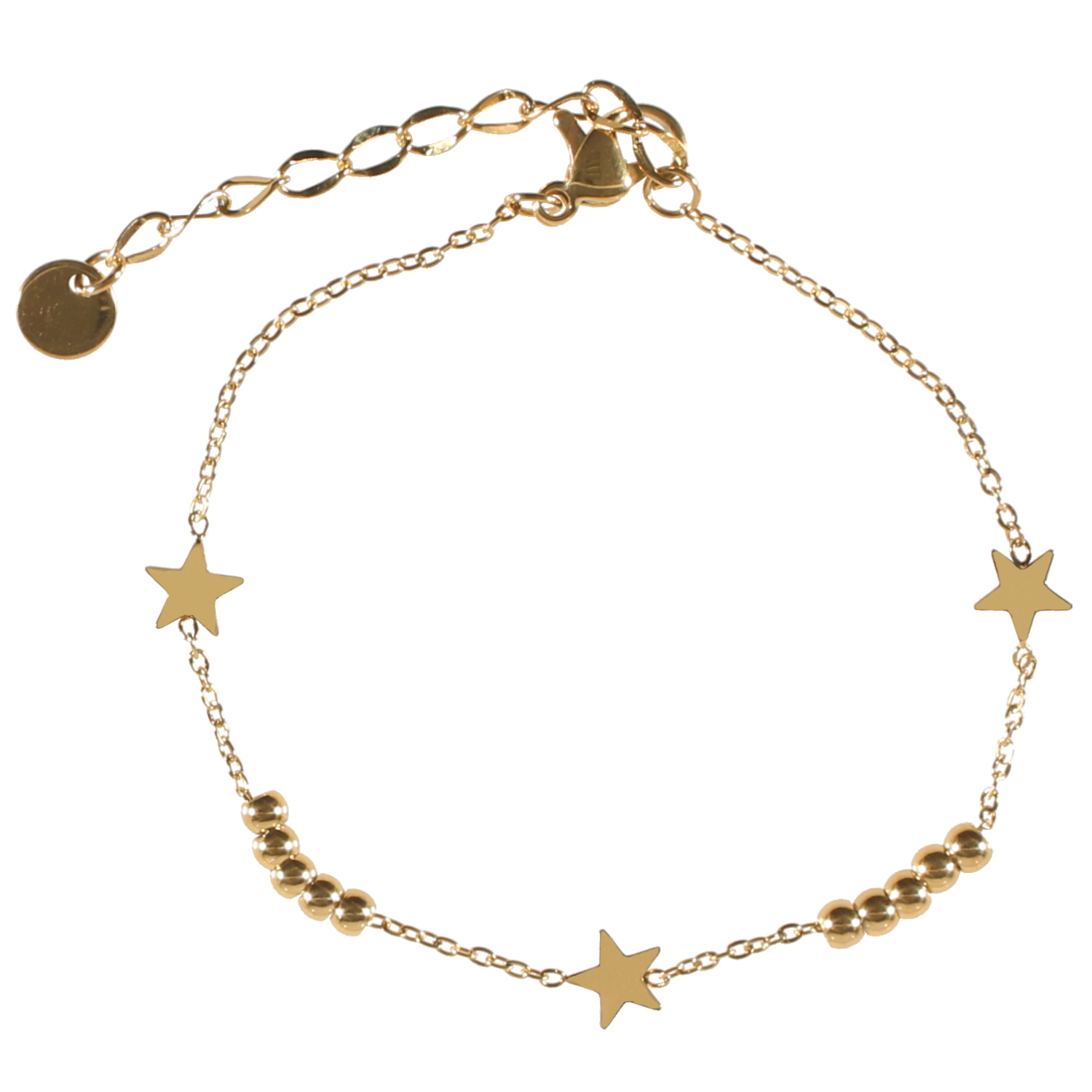 Description Bracelet composé d'une chaîne avec perles et étoiles en acier doré. Fermoir mousqueton avec 3 cm de rallonge. Longueur 16+3 cm [Guide des tailles] Largeur 6 mm Matière(s) Acier . L'acier utilisé dans la bijouterie existe sous plusieurs qualités. Nous utilisons principalement la qualité 316L, qualité qui est utilisée en chirurgie. Cet acier est donc inoxydable et reste très résistant. Fermoir Mousqueton Couleur(s) dominante(s) Doré Public Adolescent , Adulte . Genre Femme , Fille . Saison Indémodable . Thème(s) Nature . Cliquez sur une matière, un thème, une couleur ou une collection pour voir tous les articles associés.