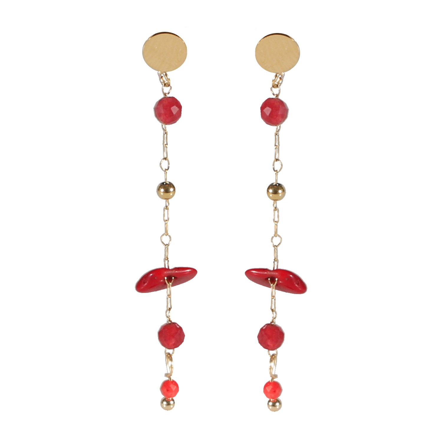 Description Boucles d'oreilles pendantes composées d'une puce ronde et d'une chaînette en acier doré avec perles de couleur rouge. Largeur 5 mm Hauteur 50 mm Matière(s) Acier , Rocaille . L'acier utilisé dans la bijouterie existe sous plusieurs qualités. Nous utilisons principalement la qualité 316L, qualité qui est utilisée en chirurgie. Cet acier est donc inoxydable et reste très résistant. Fermoir Tiges poussettes Couleur(s) dominante(s) Doré , Rouge Public Adolescent , Adulte . Genre Femme , Fille . Saison Indémodable . Cliquez sur une matière, un thème, une couleur ou une collection pour voir tous les articles associés.