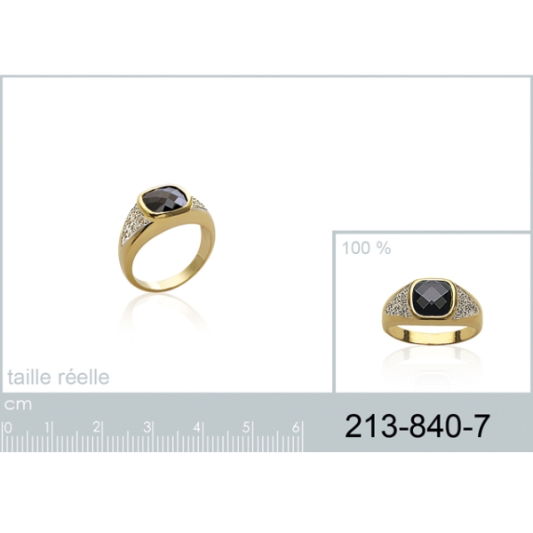 Bague en plaqué-or et pierre synthétique. Carré  Adulte Femme Homme Indémodable Mixte