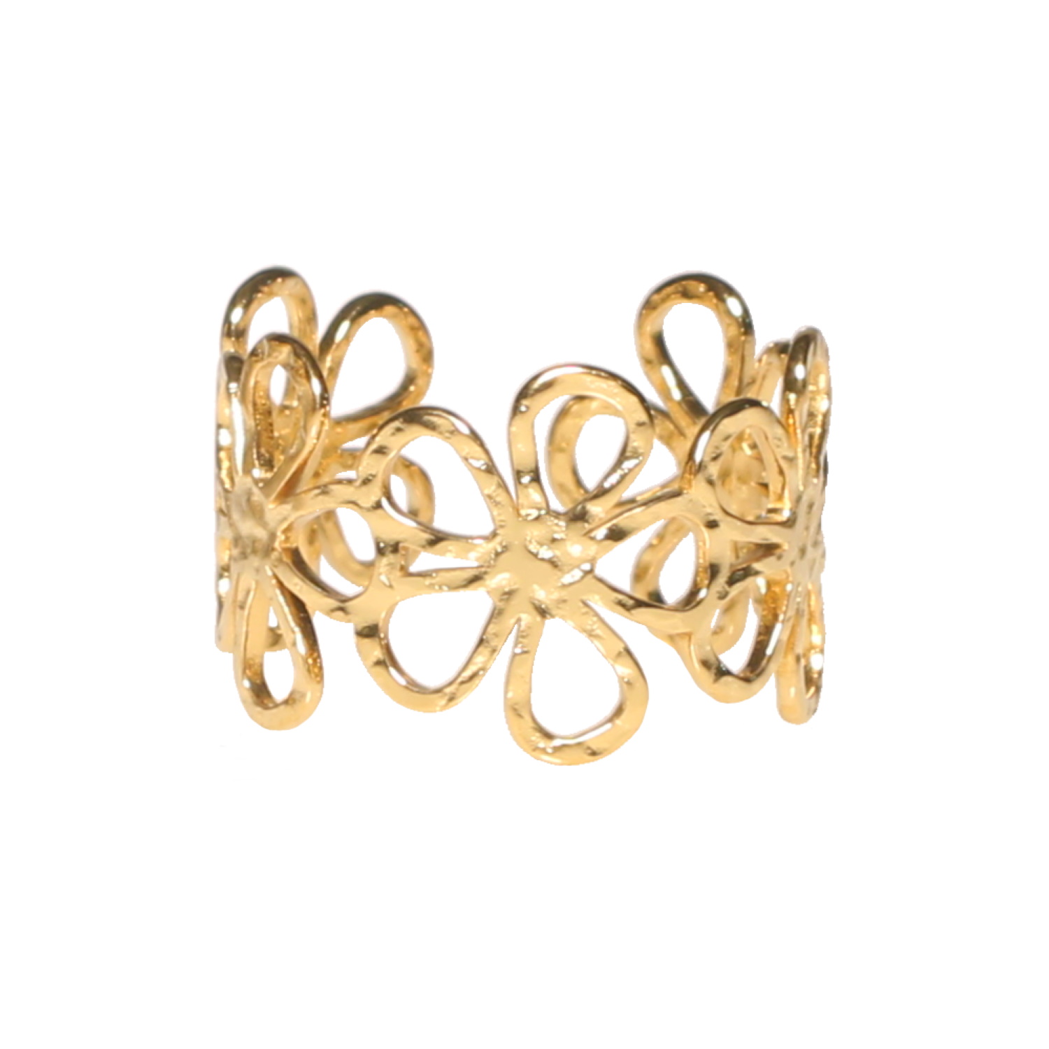 Description Bague en forme de fleurs en acier doré. Taille ajustable. Largeur 13 mm Matière(s) Acier . L'acier utilisé dans la bijouterie existe sous plusieurs qualités. Nous utilisons principalement la qualité 316L, qualité qui est utilisée en chirurgie. Cet acier est donc inoxydable et reste très résistant. Fermoir Aucun Couleur(s) dominante(s) Doré Public Adolescent , Adulte . Genre Femme , Fille . Saison Indémodable . Thème(s) Fleurs . Cliquez sur une matière, un thème, une couleur ou une collection pour voir tous les articles associés.
