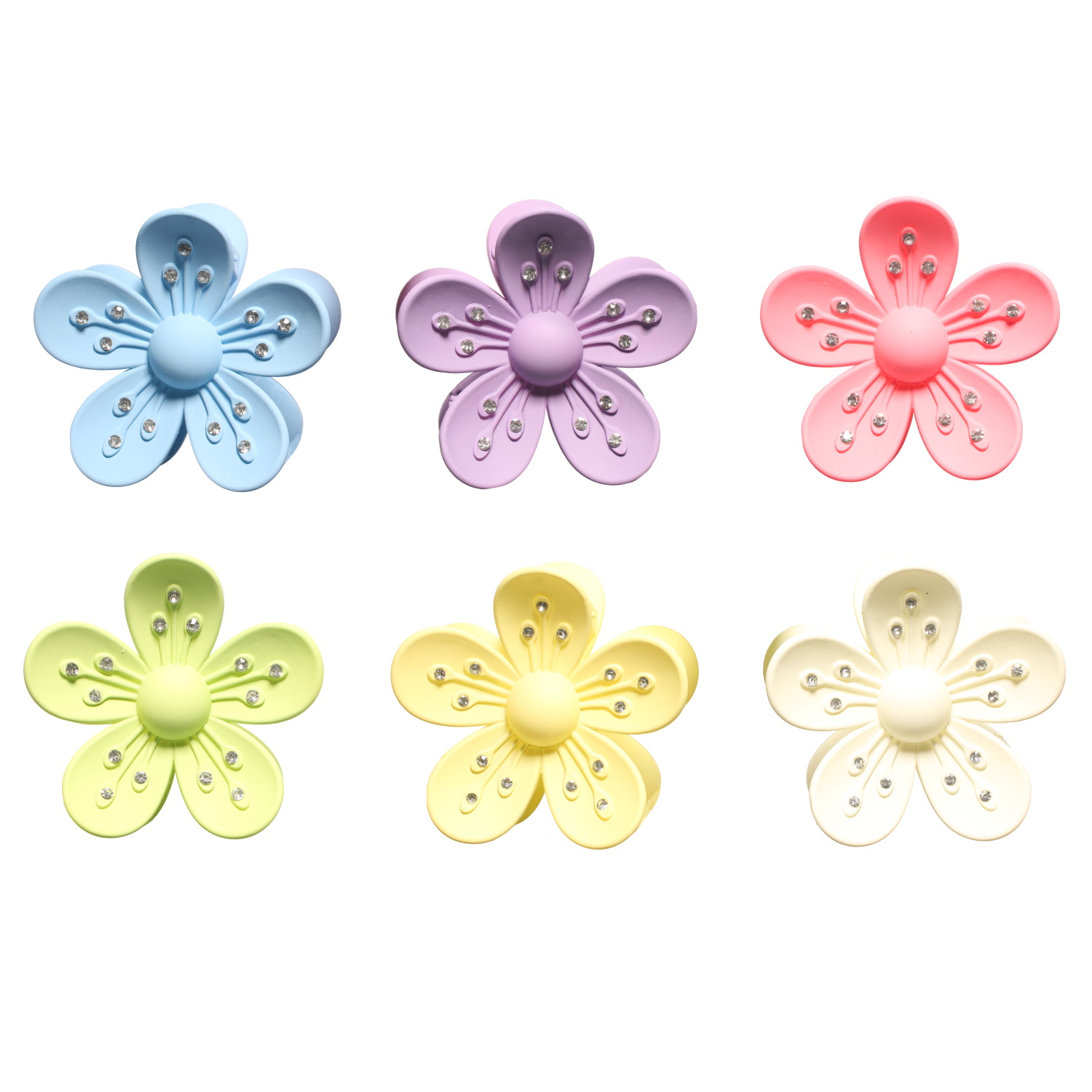 Description Pince pour cheveux en forme de fleur en plastique multicolore sertie de strass. 6 coloris différents. Vendu à l'unité. Votre préférence en commentaire. Cliquez sur une matière, un thème, une couleur ou une collection pour voir tous les articles associés.