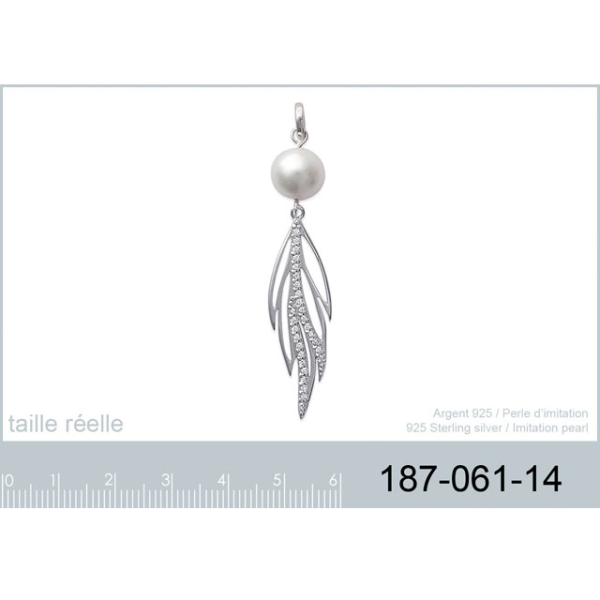 Pendentif en argent 925/000 rhodié, oxyde de zirconium et perle d'imitation.