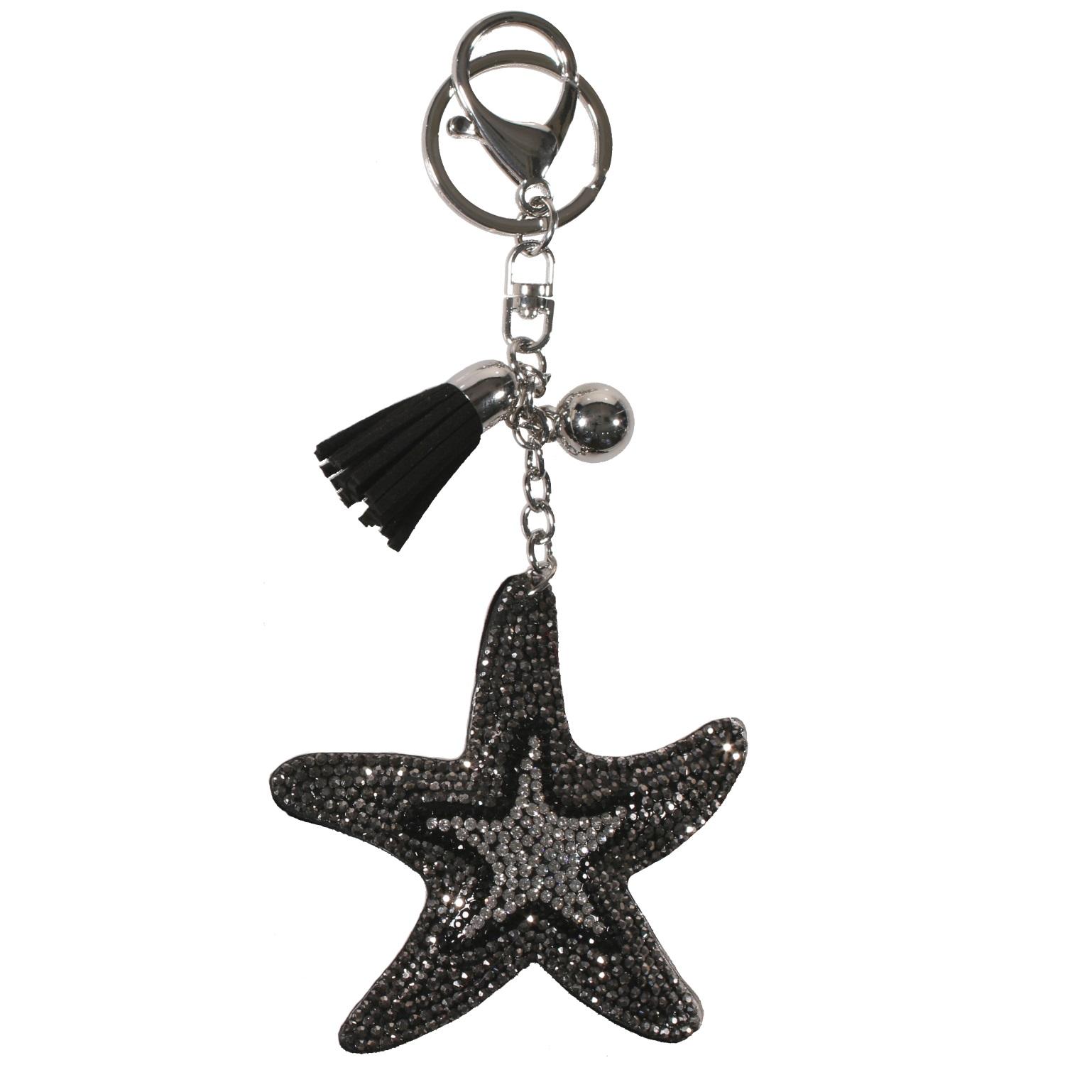 Porte-clés fantaisie en métal argenté, textile, suédine et cristaux synthétiques. Etoile  Adolescent Adulte Femme Fille Indémodable Nature