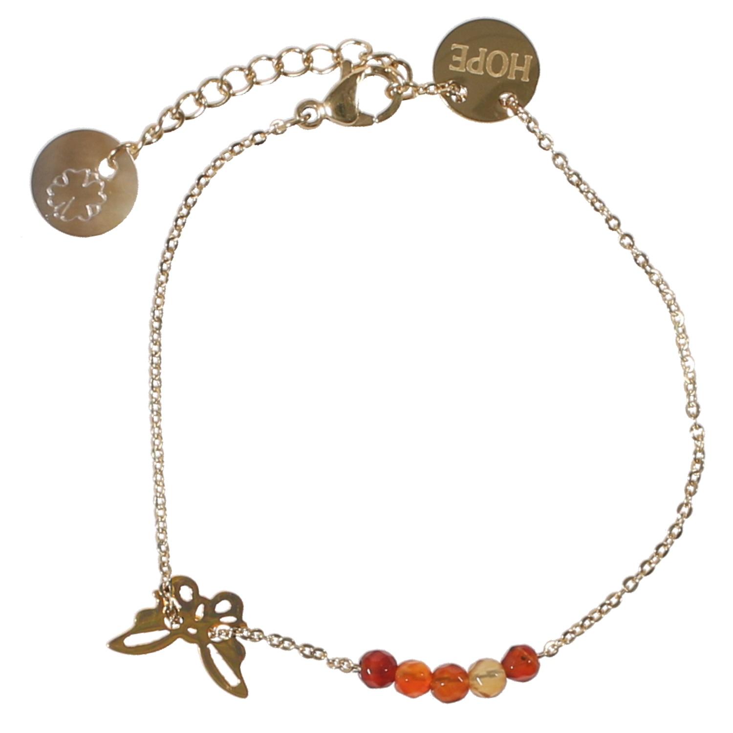 Bracelet fantaisie en acier doré, nacre et résine. Papillon  Adolescent Adulte Animaux Femme Fille Indémodable Message