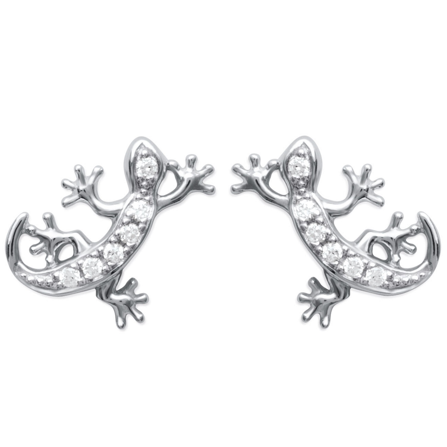 Boucles d'oreilles salamandres en argent 925/000 rhodié et oxyde de zirconium.