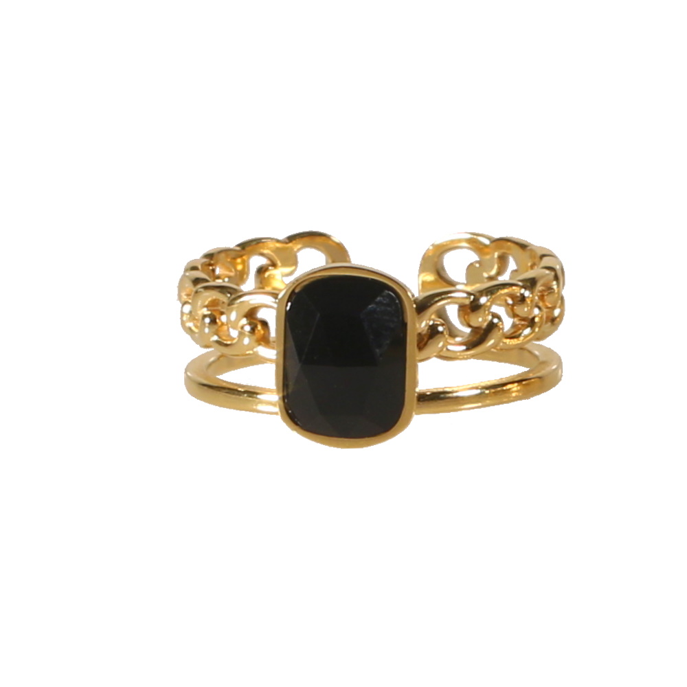 Description Bague double rangs dont un en forme de chaîne en acier doré surmontée d'une véritable pierre d'agate sertie clos. Taille ajustable. Cliquez sur une matière, un thème, une couleur ou une collection pour voir tous les articles associés.