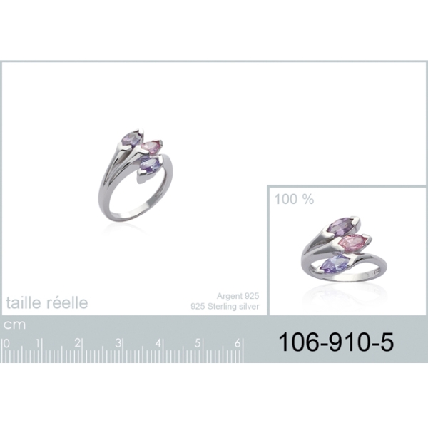 Description Bague en argent 925/000 rhodié et pierres synthétiques. Matière(s) Argent 925 rhodié , Pierre , Pierre synthétique . Afin de protéger votre bijou de l'oxydation naturelle de l'argent, il est recouvert d'une couche de rhodium (un métal rare et précieux) qui garantira sa brillance dans le temps et préviendra les risques d'allergie. Notez cependant, que le bijou est alors d'une teinte plus grisée et moins brillante que l'argent non rhodié. Poids d'argent 3,96 gramme(s) Couleur(s) dominante(s) Multicolore , Rose , Violet Public Adulte . Genre Femme . Saison Indémodable . Cliquez sur une matière, un thème, une couleur ou une collection pour voir tous les articles associés.