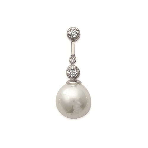 Pendentif en argent 925/000 rhodié, oxyde de zirconium et perle d'imitation.