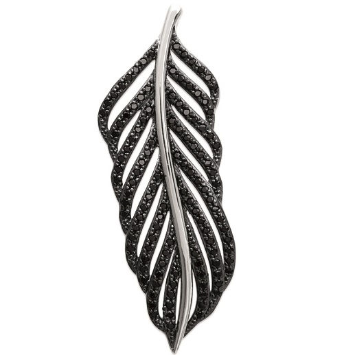 Pendentif feuille en argent 925/000 rhodié et pierres synthétiques.