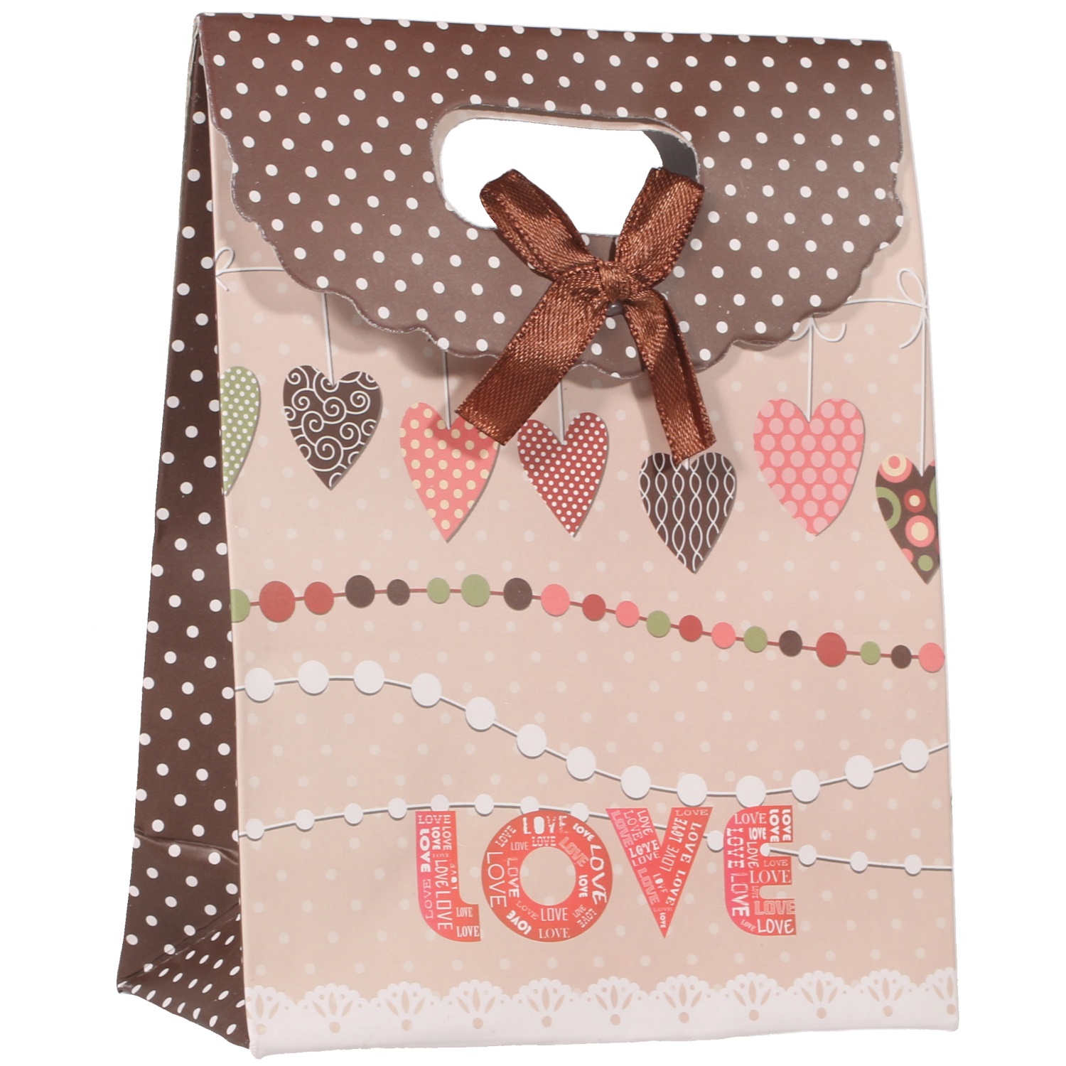 Pochette cadeaux en carton et textile.
