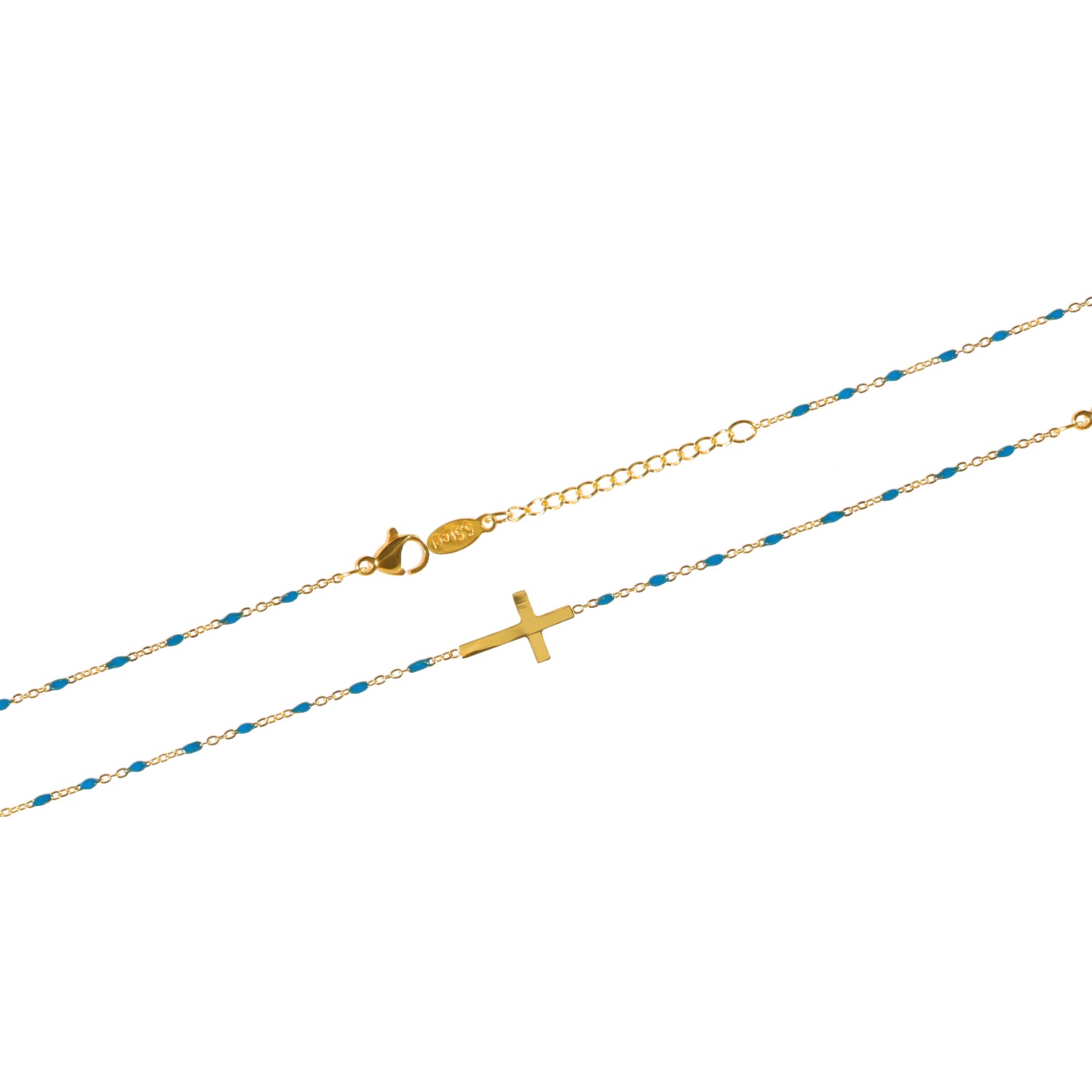 Bracelet avec croix en acier 316L doré et perles de couleur en émail.