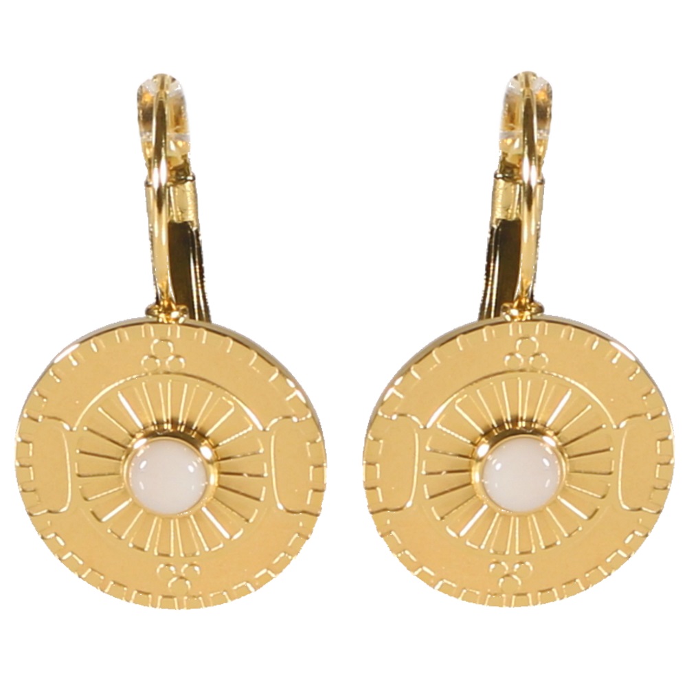 Description Boucles d'oreilles pendantes en acier doré et pierres de couleur blanche. Largeur 16 mm Hauteur 28 mm Matière(s) Acier , Rocaille . L'acier utilisé dans la bijouterie existe sous plusieurs qualités. Nous utilisons principalement la qualité 316L, qualité qui est utilisée en chirurgie. Cet acier est donc inoxydable et reste très résistant. Fermoir Dormeuses Couleur(s) dominante(s) Blanc , Doré Public Adolescent , Adulte . Genre Femme , Fille . Saison Indémodable . Cliquez sur une matière, un thème, une couleur ou une collection pour voir tous les articles associés.