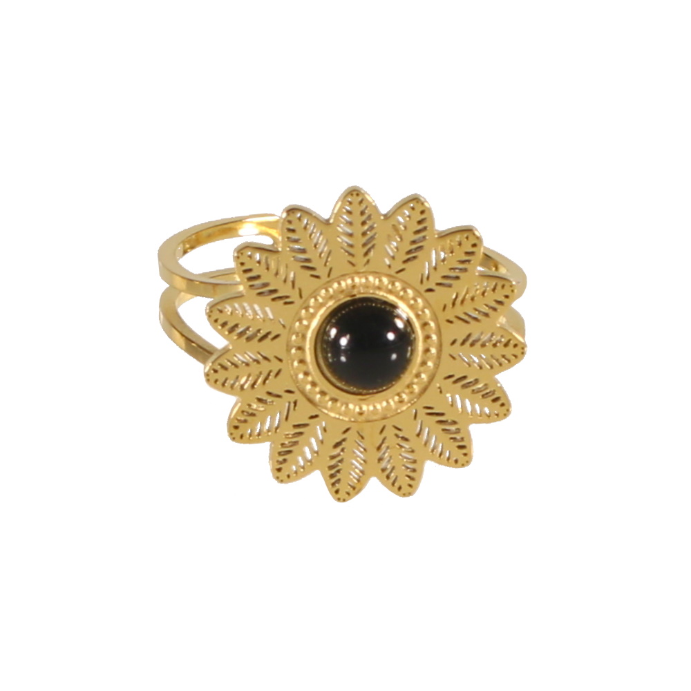 Description Bague en forme de fleur en acier doré surmontée d'une pierre de couleur noire. Taille ajustable. Largeur 17 mm Matière(s) Acier , Rocaille . L'acier utilisé dans la bijouterie existe sous plusieurs qualités. Nous utilisons principalement la qualité 316L, qualité qui est utilisée en chirurgie. Cet acier est donc inoxydable et reste très résistant. Fermoir Aucun Couleur(s) dominante(s) Doré , Noir Public Adolescent , Adulte . Genre Femme , Fille . Saison Indémodable . Thème(s) Fleurs , Nature . Cliquez sur une matière, un thème, une couleur ou une collection pour voir tous les articles associés.