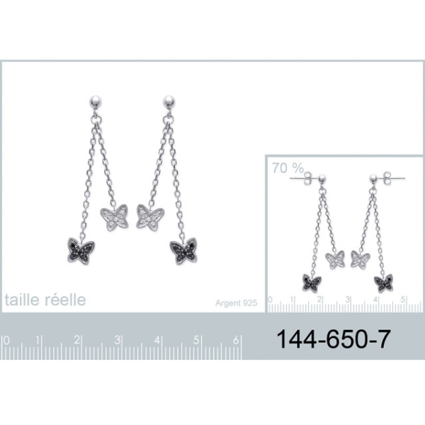 Boucles d'oreilles en argent 925/000 rhodié, oxyde de zirconium et pierres synthétiques.