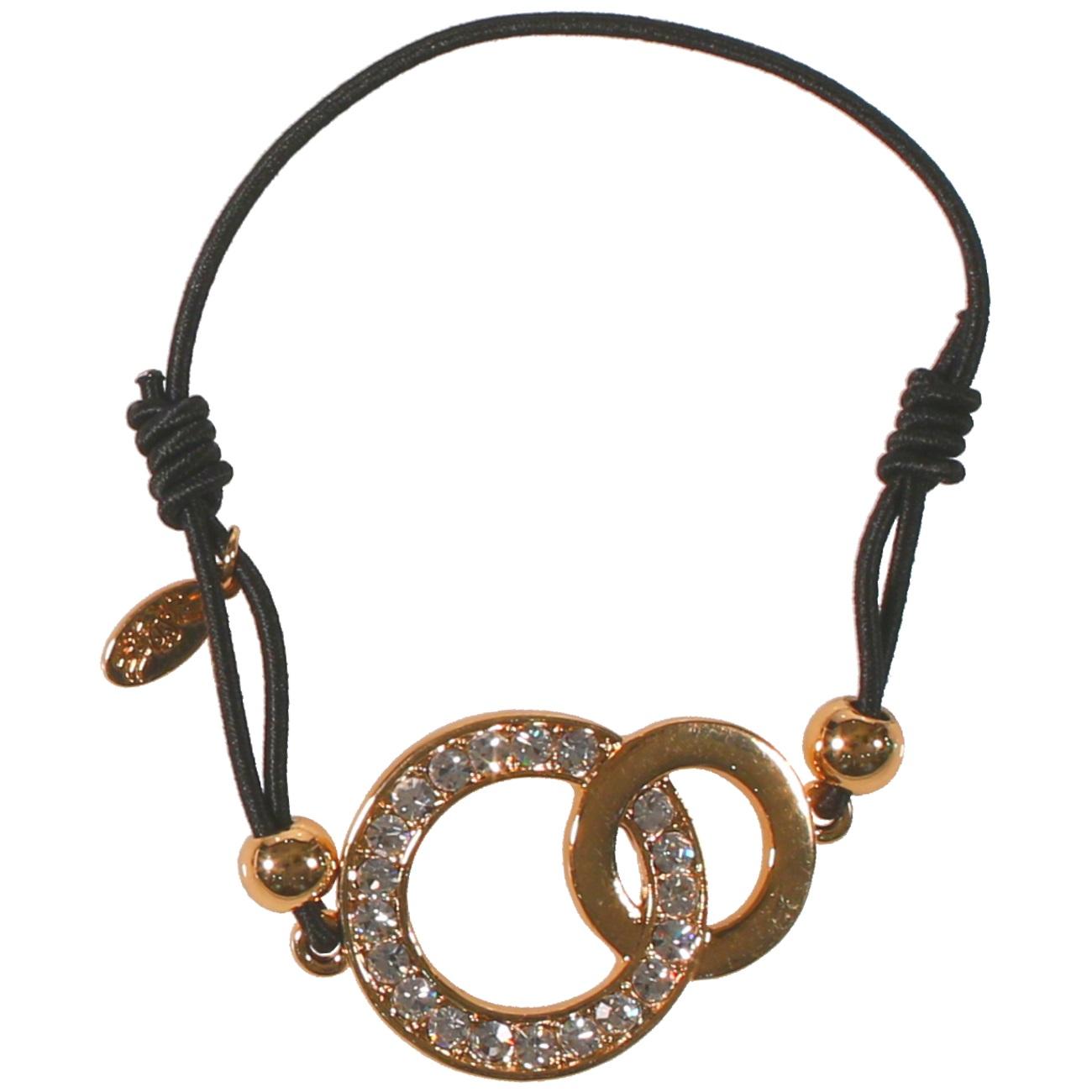 Bracelet fantaisie en métal doré, textile et cristaux synthétiques. Elastique Rond  Adolescent Adulte Femme Fille Indémodable