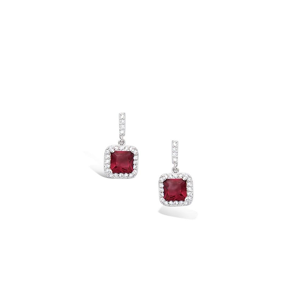 Boucles d'oreilles en argent 925/000 rhodié, verre rubis et oxydes de zirconium.