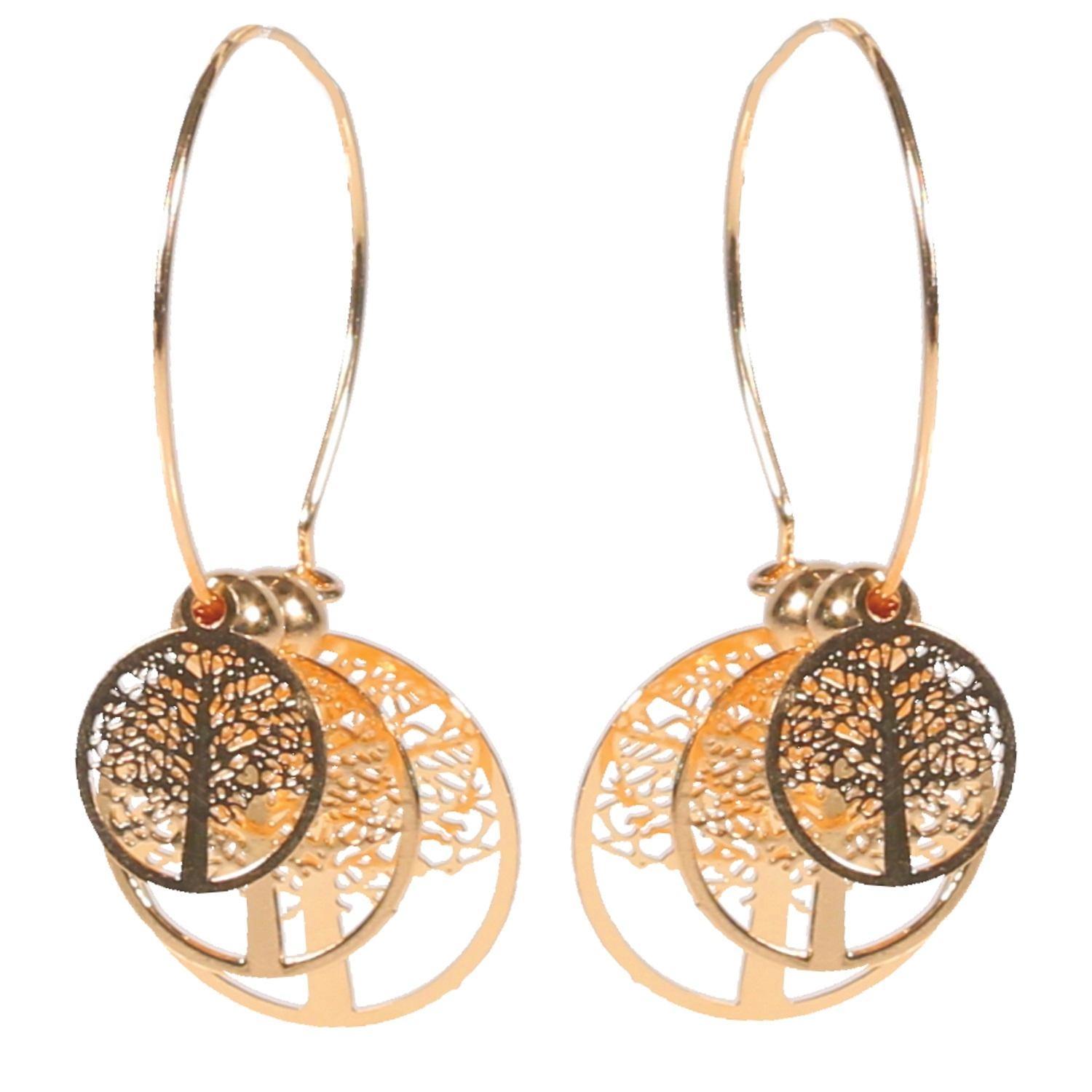 Boucles d'oreilles fantaisie en métal doré. Arbre Pendantes Rond  Adolescent Adulte Femme Fille Indémodable Nature