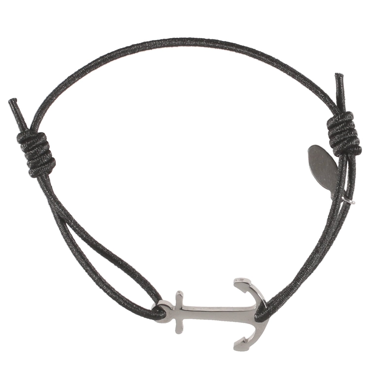 Bracelet élastique ancre en acier argenté et cordon en coton.