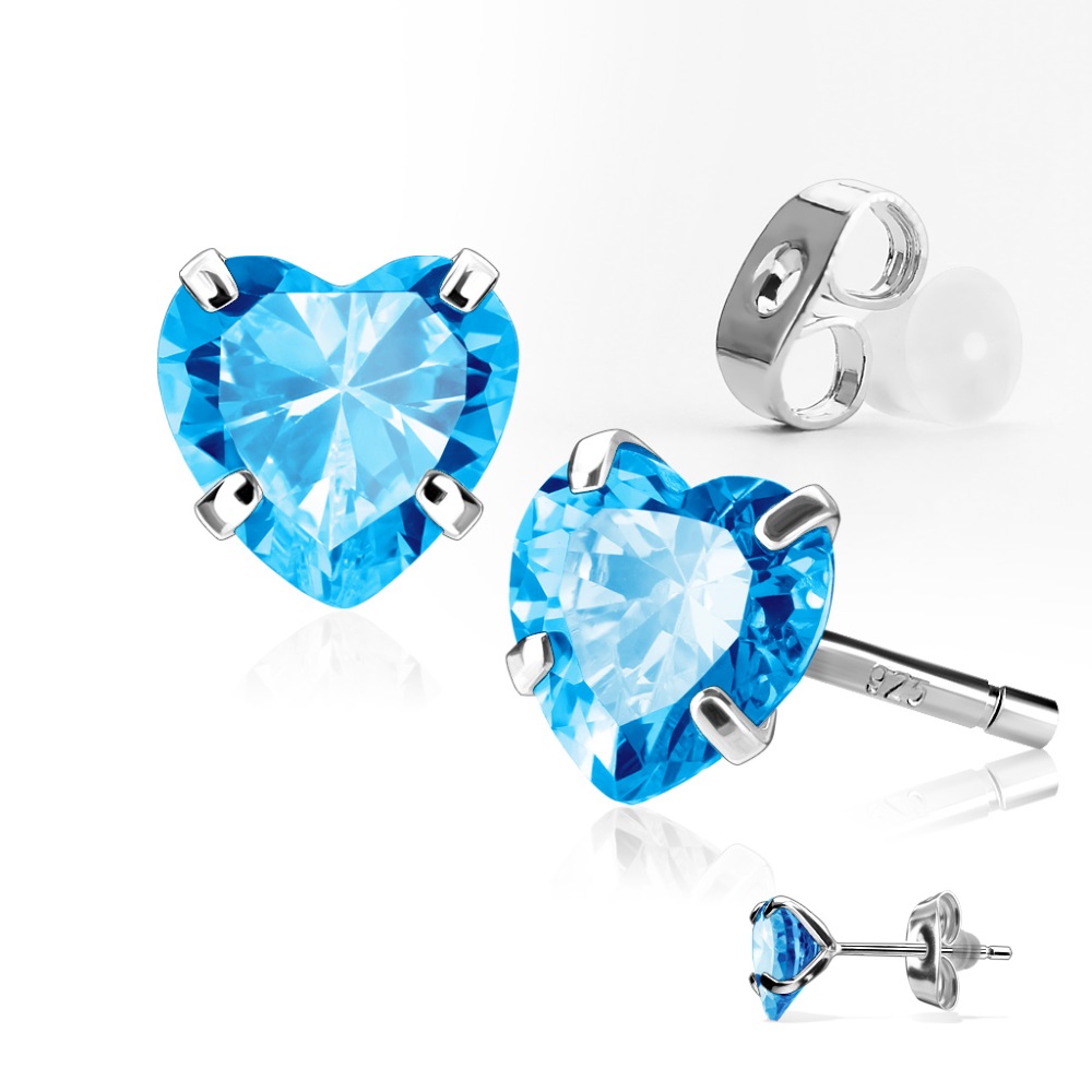 Boucles d'oreilles cœurs en argent 925/000 rhodié et oxyde de zirconium de couleur bleue turquoise.