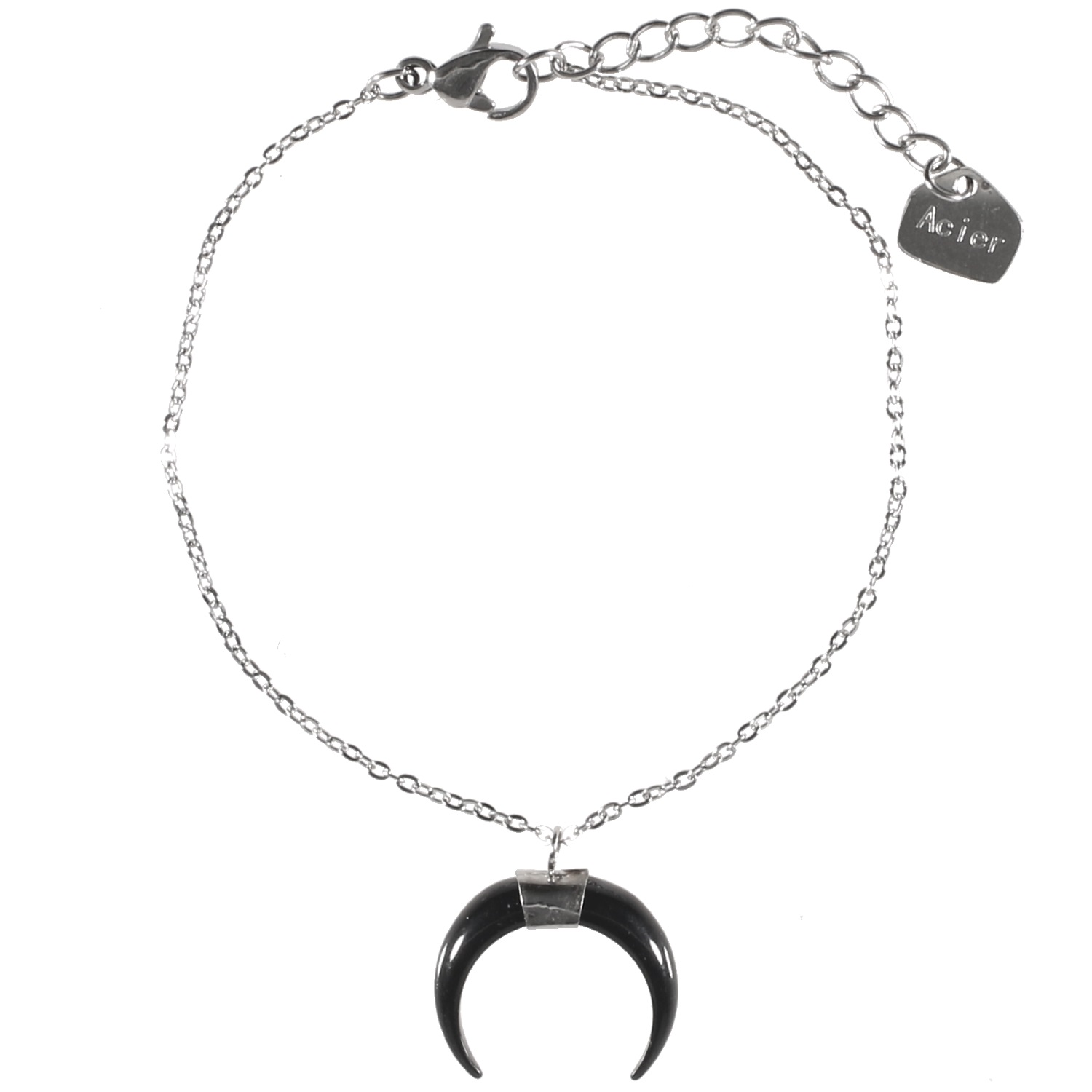 Description Bracelet en acier argenté et croissant en résine de couleur noire. Longueur 16+3 cm [Guide des tailles] Matière(s) Acier , Résine . L'acier utilisé dans la bijouterie existe sous plusieurs qualités. Nous utilisons principalement la qualité 316L, qualité qui est utilisée en chirurgie. Cet acier est donc inoxydable et reste très résistant. Fermoir Mousqueton À noter Pendant croissant 13x15 mm Couleur(s) dominante(s) Argenté , Noir Public Adolescent , Adulte . Genre Femme , Fille . Saison Indémodable . Cliquez sur une matière, un thème, une couleur ou une collection pour voir tous les articles associés.