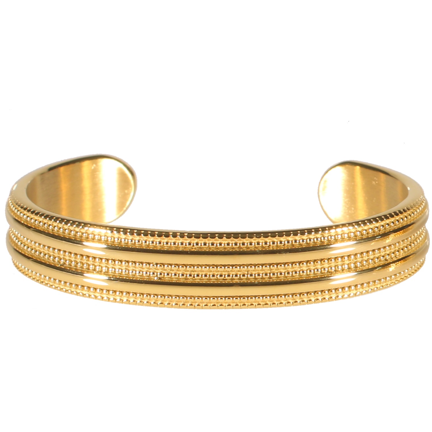 Description Bracelet jonc rigide en acier doré. Largeur 11 mm Diamètre 58 mm [Guide des tailles] Matière(s) Acier . L'acier utilisé dans la bijouterie existe sous plusieurs qualités. Nous utilisons principalement la qualité 316L, qualité qui est utilisée en chirurgie. Cet acier est donc inoxydable et reste très résistant. Fermoir Aucun Couleur(s) dominante(s) Doré Public Adolescent , Adulte . Genre Femme , Fille . Saison Indémodable . Cliquez sur une matière, un thème, une couleur ou une collection pour voir tous les articles associés.