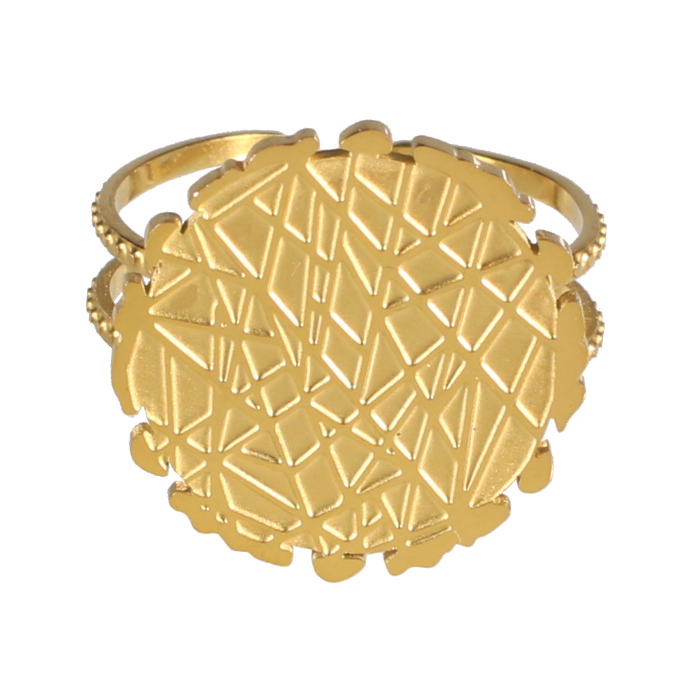 Description Bague double rangs surmontée d'une pastille ronde avec motifs en relief en acier doré. Taille ajustable. Largeur 17 mm Matière(s) Acier . L'acier utilisé dans la bijouterie existe sous plusieurs qualités. Nous utilisons principalement la qualité 316L, qualité qui est utilisée en chirurgie. Cet acier est donc inoxydable et reste très résistant. Fermoir Aucun Couleur(s) dominante(s) Doré Public Adolescent , Adulte . Genre Femme , Fille . Saison Indémodable . Cliquez sur une matière, un thème, une couleur ou une collection pour voir tous les articles associés.
