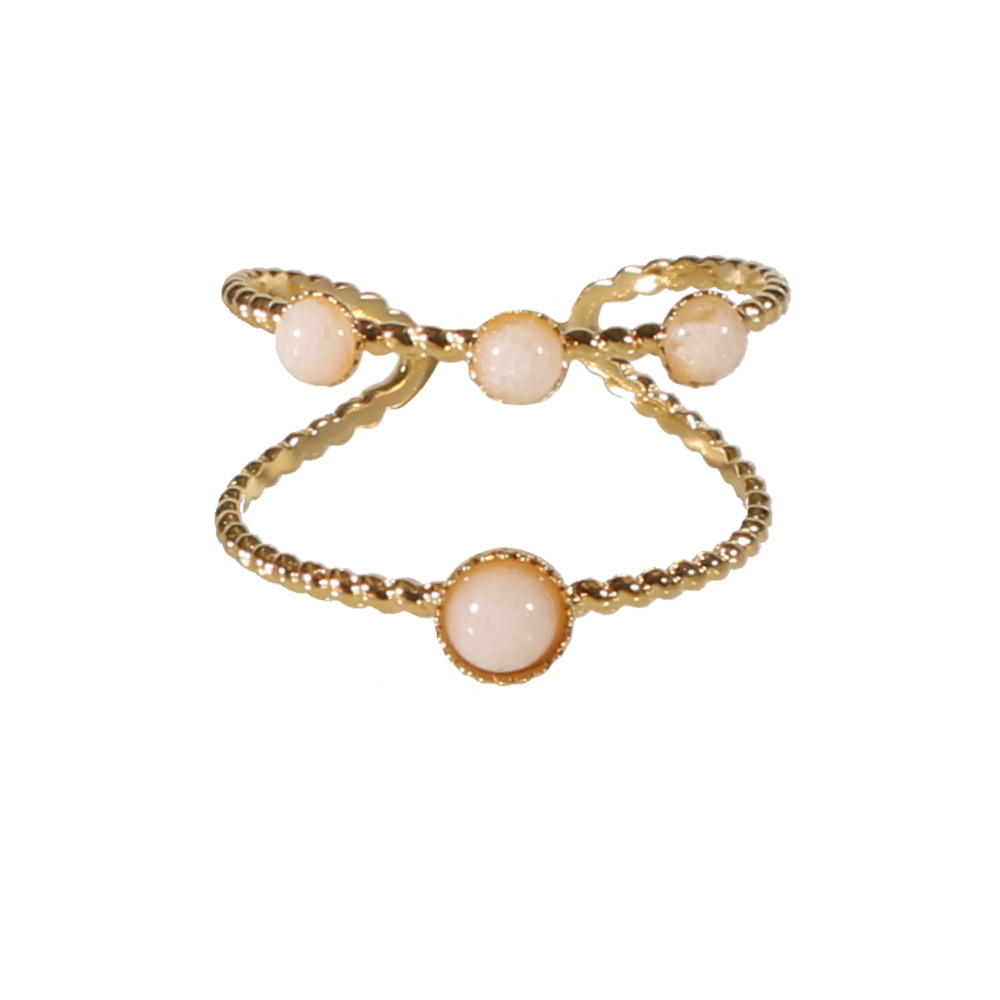 Bague double rangs en acier doré surmontée de 5 cabochons en véritable pierre de lune.