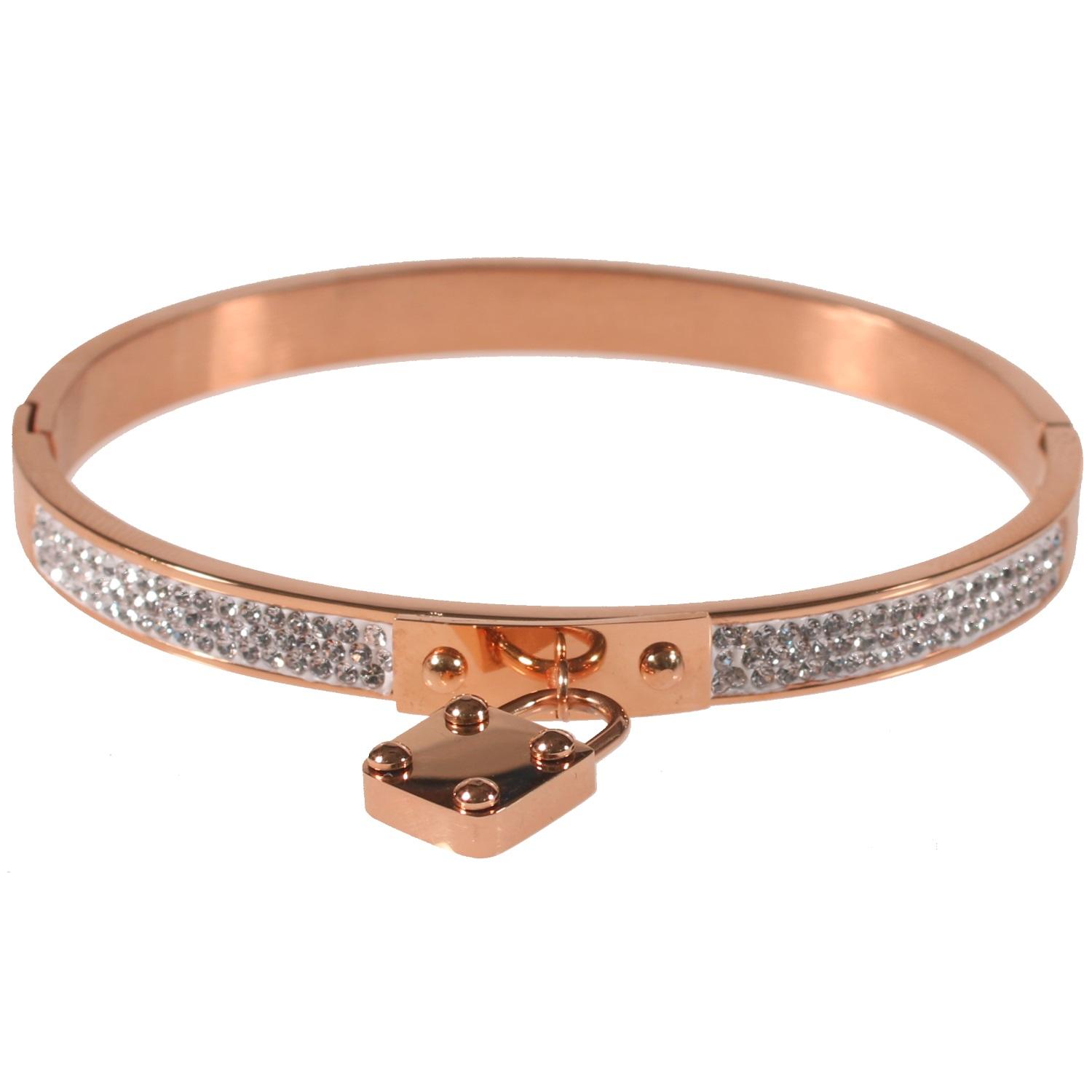 Description Bracelet jonc rigide en acier rosé et cristaux synthétiques. Largeur 6 mm Diamètre 60 mm [Guide des tailles] Matière(s) Acier , Rocaille . L'acier utilisé dans la bijouterie existe sous plusieurs qualités. Nous utilisons principalement la qualité 316L, qualité qui est utilisée en chirurgie. Cet acier est donc inoxydable et reste très résistant. Fermoir Charnière Couleur(s) dominante(s) Rose Public Adolescent , Adulte . Genre Femme , Fille . Saison Indémodable . Cliquez sur une matière, un thème, une couleur ou une collection pour voir tous les articles associés.