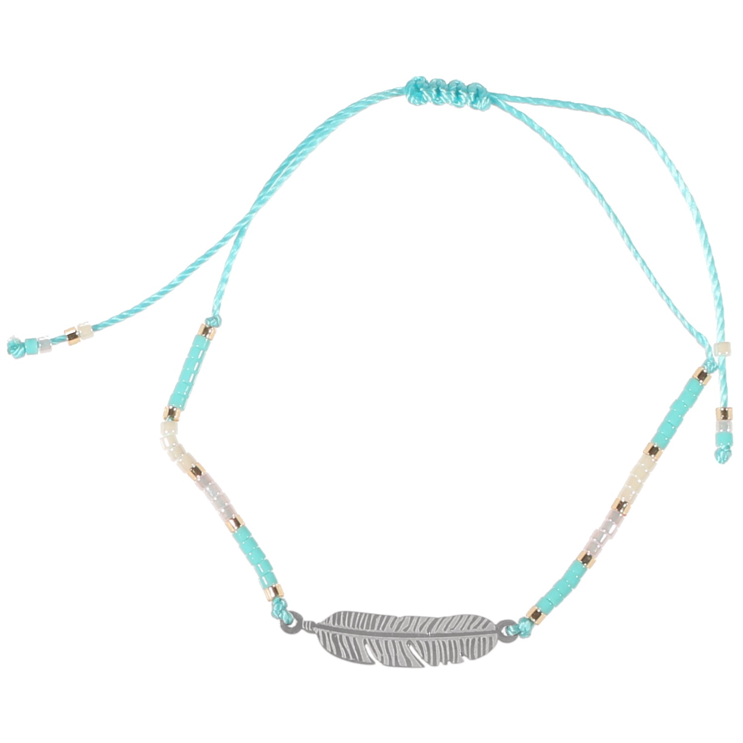 Bracelet Plume en acier, pierres synthétiques et textile.