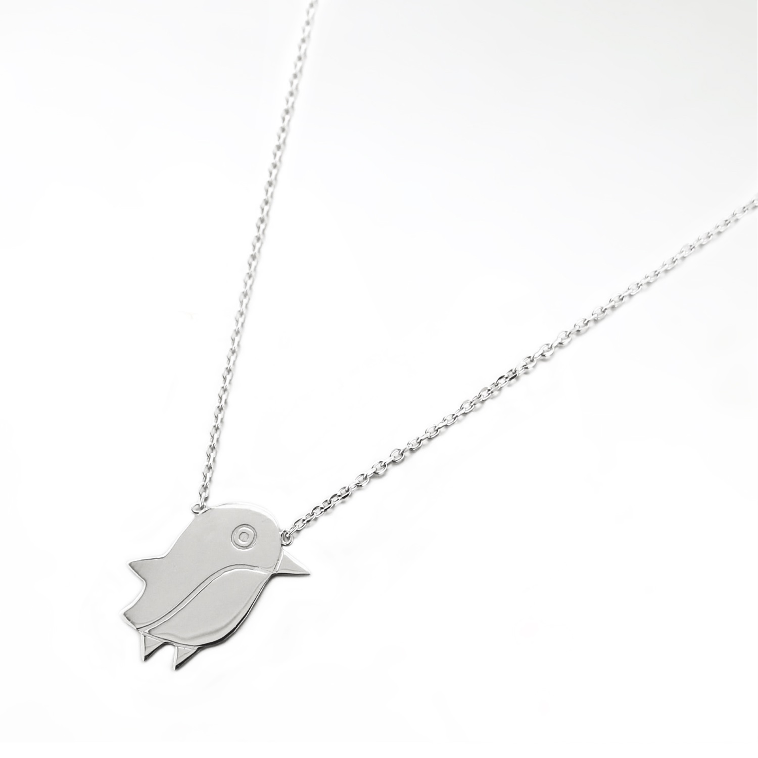 Collier pingouin en argent 925/000 rhodié.