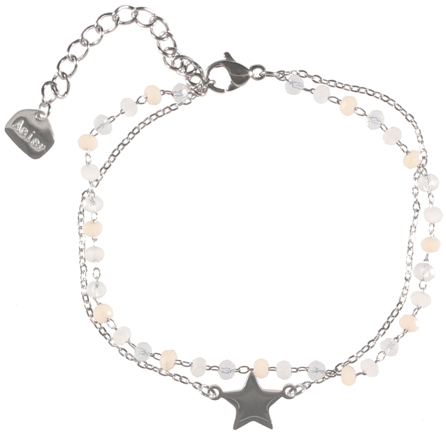 Description Bracelet double rangs composé d'une chaîne en acier argenté avec perles de couleur blanche ainsi qu'une chaîne avec étoile en acier argenté. Cliquez sur une matière, un thème, une couleur ou une collection pour voir tous les articles associés.