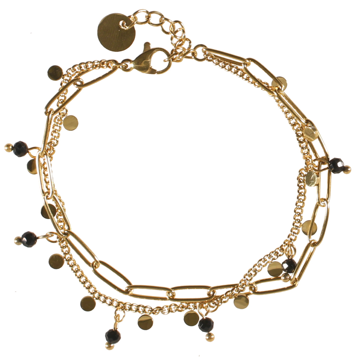 Description Bracelet double rangs composé d'une chaîne en acier doré et d'une chaîne avec pampilles rondes en acier doré et de pampilles en perles de couleur noire. Fermoir mousqueton avec 2.5 cm de rallonge. Longueur 16+2.5 cm [Guide des tailles] Largeur 8 mm Matière(s) Acier , Rocaille . L'acier utilisé dans la bijouterie existe sous plusieurs qualités. Nous utilisons principalement la qualité 316L, qualité qui est utilisée en chirurgie. Cet acier est donc inoxydable et reste très résistant. Fermoir Mousqueton Couleur(s) dominante(s) Doré , Noir Public Adolescent , Adulte . Genre Femme , Fille . Saison Indémodable . Cliquez sur une matière, un thème, une couleur ou une collection pour voir tous les articles associés.
