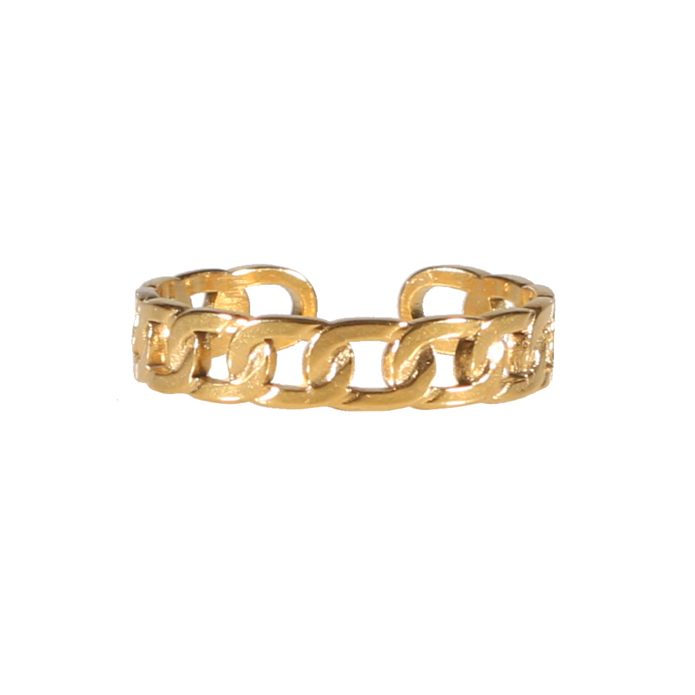 Description Bague fantaisie en forme de chaîne en acier doré. Taille ajustable. Largeur 5 mm Matière(s) Acier . L'acier utilisé dans la bijouterie existe sous plusieurs qualités. Nous utilisons principalement la qualité 316L, qualité qui est utilisée en chirurgie. Cet acier est donc inoxydable et reste très résistant. Couleur(s) dominante(s) Doré Public Adolescent , Adulte . Genre Femme , Fille . Saison Indémodable . Collection Christine Cliquez sur une matière, un thème, une couleur ou une collection pour voir tous les articles associés.