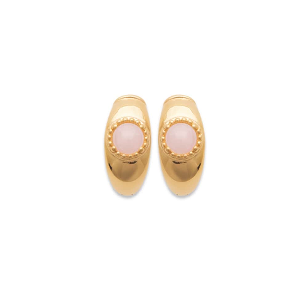 Boucles d'oreilles créoles en plaqué or et quartz rose.