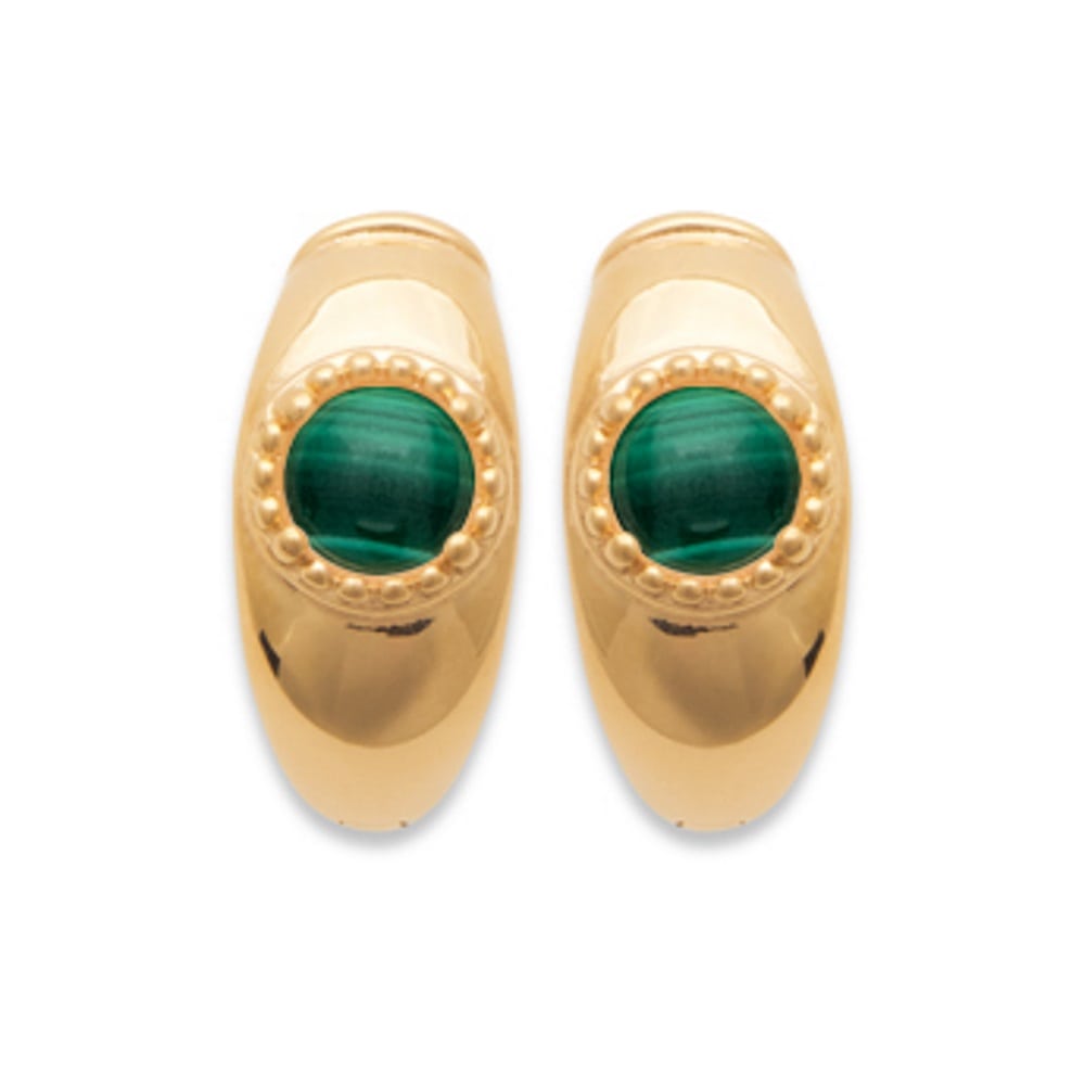 Boucles d'oreilles créoles en plaqué or 18 carats et pierres de malachite.