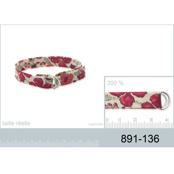 Bracelet en argent 925/000 et textile motif Liberty.