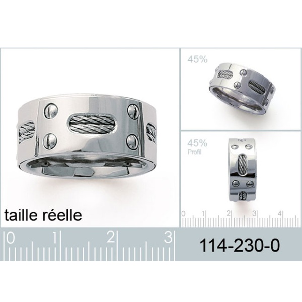 Description Bague en acier et câble. Largeur 10 mm Matière(s) Acier . L'acier utilisé dans la bijouterie existe sous plusieurs qualités. Nous utilisons principalement la qualité 316L, qualité qui est utilisée en chirurgie. Cet acier est donc inoxydable et reste très résistant. Couleur(s) dominante(s) Argenté Public Adulte . Genre Femme , Homme , Mixte . Saison Indémodable . Cliquez sur une matière, un thème, une couleur ou une collection pour voir tous les articles associés.
