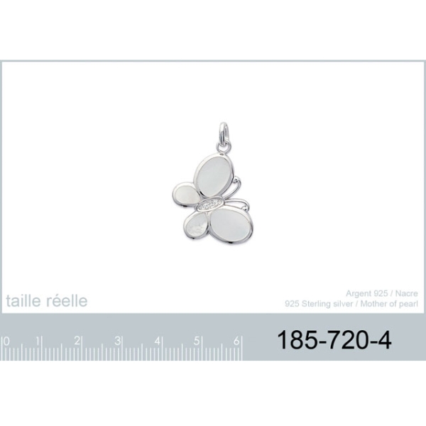 Pendentif en argent 925/000 rhodié et nacre. Papillon  Adulte Animaux Femme Indémodable