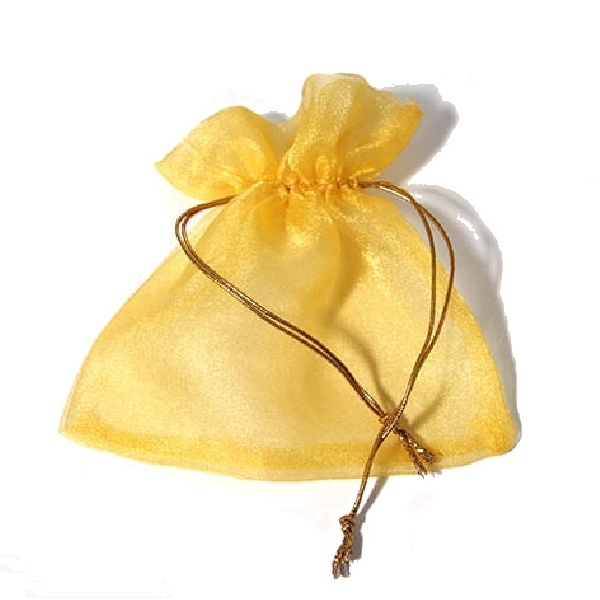 Sachet cadeau en organza jaune.