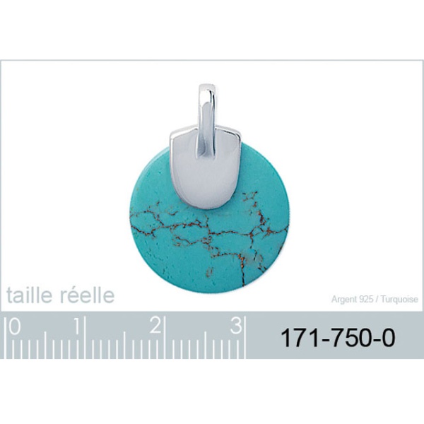 Pendentif en argent 925/000 rhodié et turquoise.