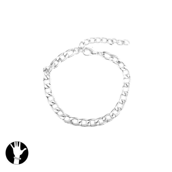 Description Bracelet fantaisie en métal argenté. Maille gourmette. Fermoir mousqueton. À noter Longueur 21 cm + extension Public Genre Saison Collection Homme actuel Cliquez sur une matière, un thème, une couleur ou une collection pour voir tous les articles associés.