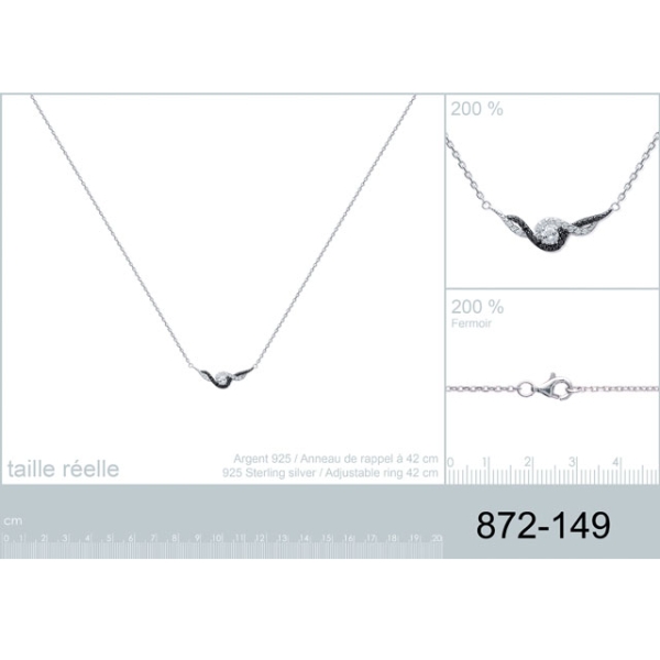 Collier en argent 925/000 rhodié, oxyde de zirconium et pierres synthétiques.