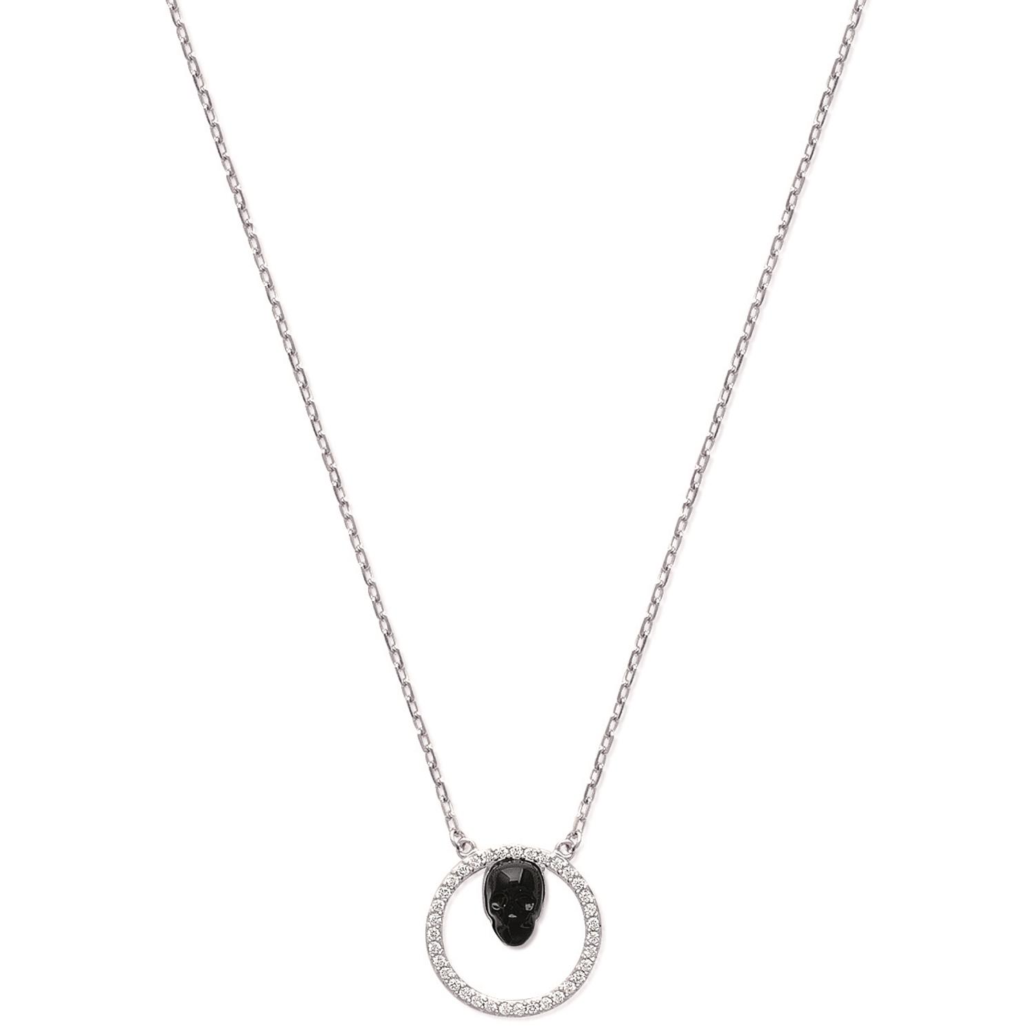 Collier en argent 925/000 rhodié, oxyde de zirconium et céramique.