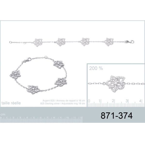 Bracelet en argent 925/000 rhodié et oxyde de zirconium.  Adulte Femme Fleurs Indémodable