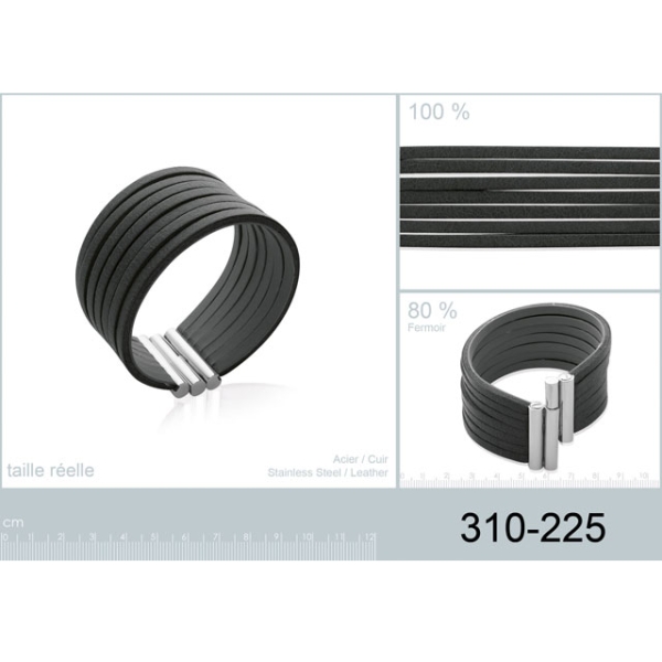 Description Bracelet en cuir. Longueur 19 cm [Guide des tailles] Largeur 32 mm Matière(s) Acier , Cuir . L'acier utilisé dans la bijouterie existe sous plusieurs qualités. Nous utilisons principalement la qualité 316L, qualité qui est utilisée en chirurgie. Cet acier est donc inoxydable et reste très résistant. Fermoir Autre Couleur(s) dominante(s) Noir Public Adulte . Genre Femme . Saison Indémodable . Cliquez sur une matière, un thème, une couleur ou une collection pour voir tous les articles associés.